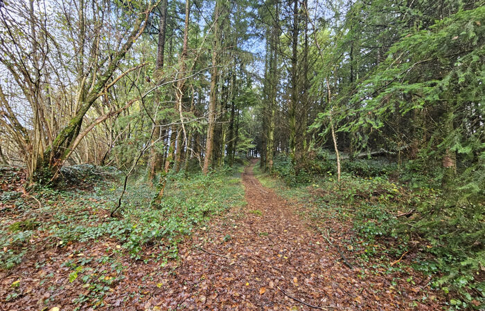 Sur le territoire de SIlfiac (56), un terrain boisé (pin douglas) à vendre, bordé par un sentier pedestre de randonnée et petit ruisseau.