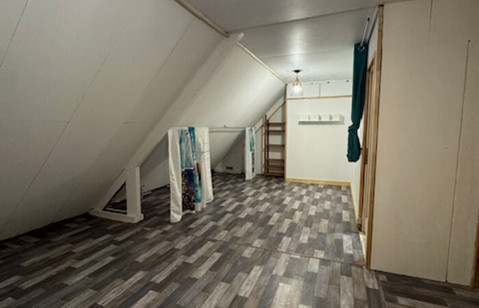 A l'étage : Une troisième chambre, possibilité de faire une nouvelle chambre, une salle d'eau, un WC et deux espaces utilisés comme grenier.