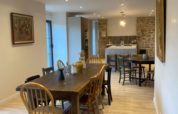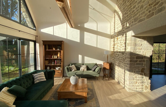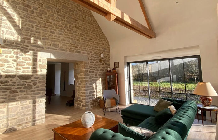 RARE Superbe longère rénovée avec goût en 2024 sur la commune de Malguénac. Cette propriété de charme allie authenticité et modernité, offrant des volumes généreux et une belle luminosité grâce à son exposition plein SUD. Elle développe environ 250 m2 habitables, dont un vaste séjour de 80 m2.